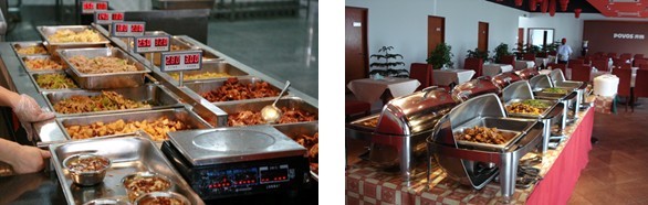 如果貴方每餐人均餐標在20元以上,我們將考慮采取此種形式。每餐菜品不少于20種,除主葷菜由我方工作人員酌情掌握外,其余菜品均由就餐者根據個人口味及食量自盛。此外,現場還有主食、粥、湯、水果、點心、酸奶等十余種供選擇。